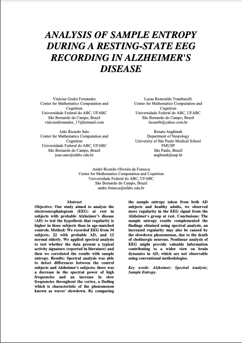 Fernandes VG, Trambaiolli LR, Sato JR, Anghinah R, Fonseca A. (2015). In: 10th International Brazilian Meeting on Cognitive Science, 2015, Sao Paulo, Brazil.