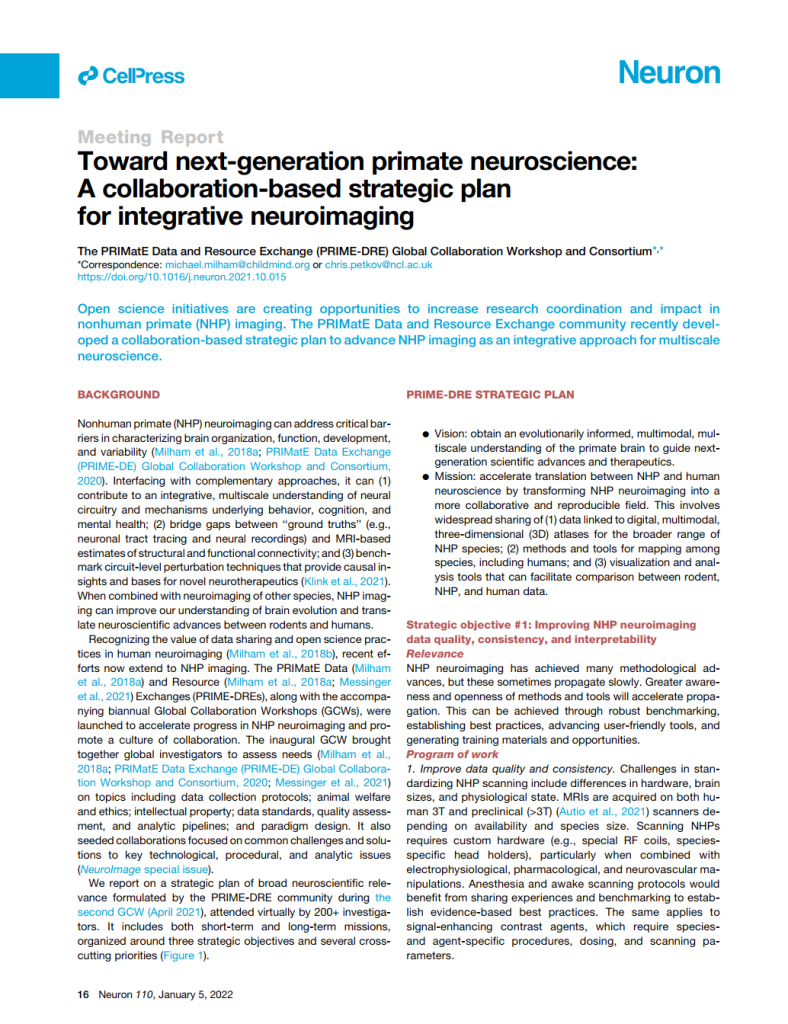 Toward next-generation primate neuroscience: A collaboration-based strategic plan for integrative neuroimaging.
