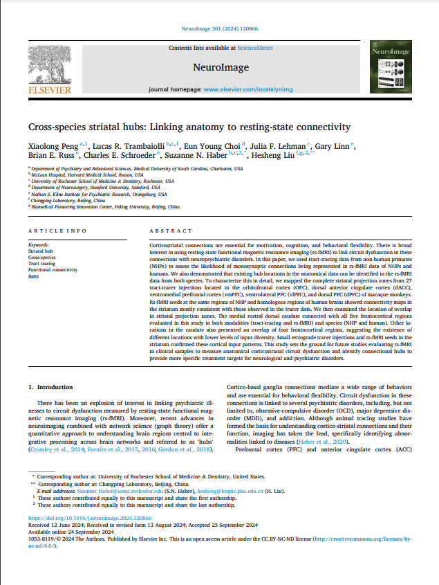 Peng X*, Trambaiolli LR*, Linn G, Russ BE, Schroeder CE, Lehman JF, Haber SN, Liu H. (2024). Neuroimage. 301:120866. DOI: https://doi.org/10.1016/j.neuroimage.2024.120866
